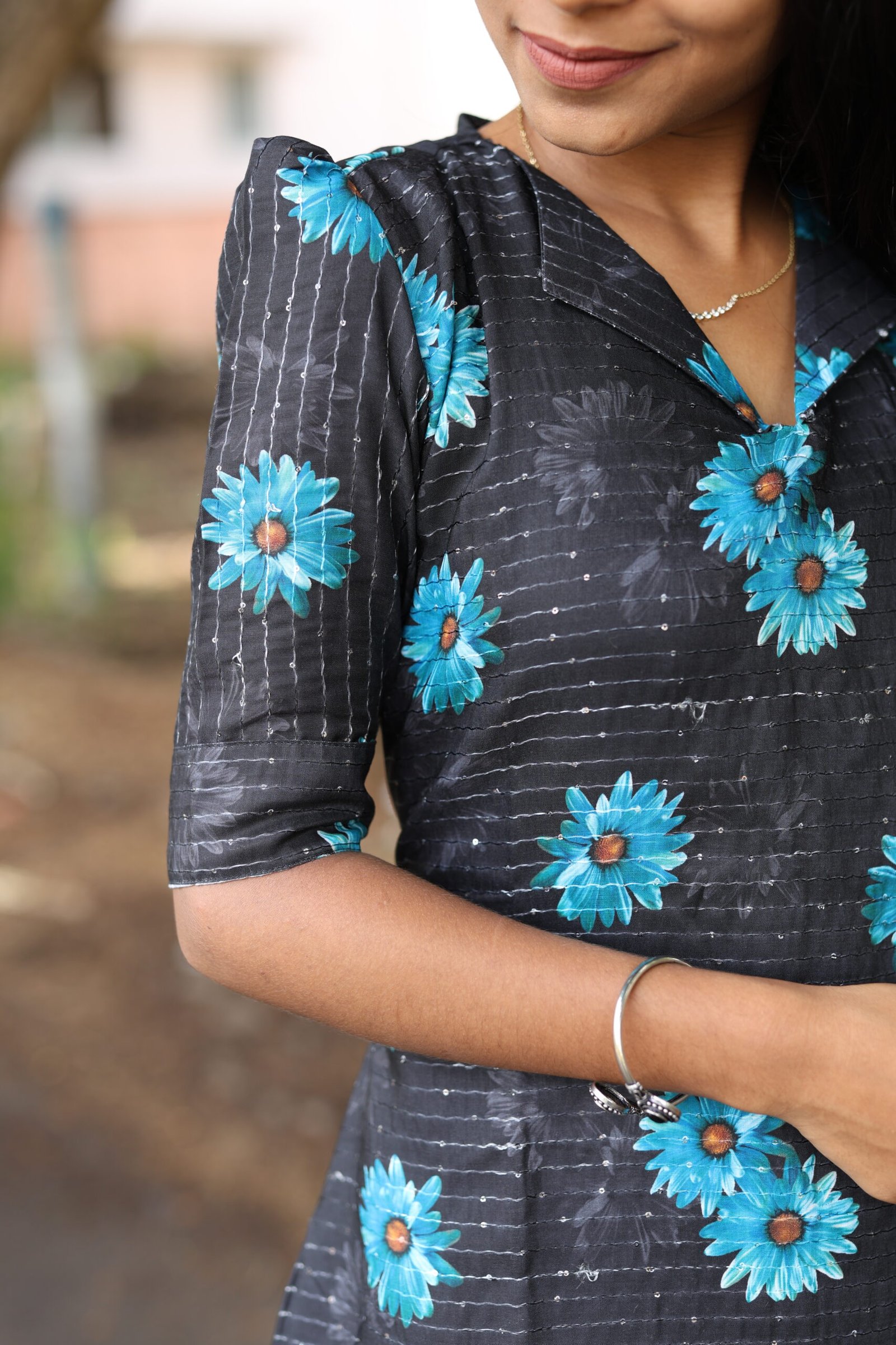 Top Only! Step into everyday style with our Navy Blue Checked Cotton Kurti, designed for comfort and sophistication. Made from soft and breathable cotton, this kurti keeps you cool and comfortable throughout the day. The navy blue base is beautifully enhanced with golden checkered lines, giving it a classic, refined look suitable for both work and casual wear.